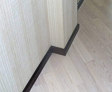 Способ монтажа: плинтус запиливается под 45° при помощи ножовки и стусла. Для установки плинтуса к стене используются специальные монтажные клипсы. Клипсы монтируются к стене, а затем на них защелкивается сам плинтус.
