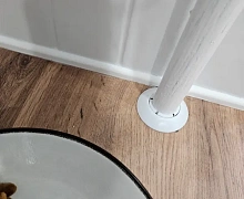 Диаметр 22 мм. Центр отверстия под трубу смещен вбок. Предназначен для оформления стыка вертикальных труб и пола. Закрытия технологических зазоров и нервных краев покрытия.
