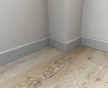 МДФ плинтус от компании "Лука". Перекроет зазор между стеной и полом до 16 мм.