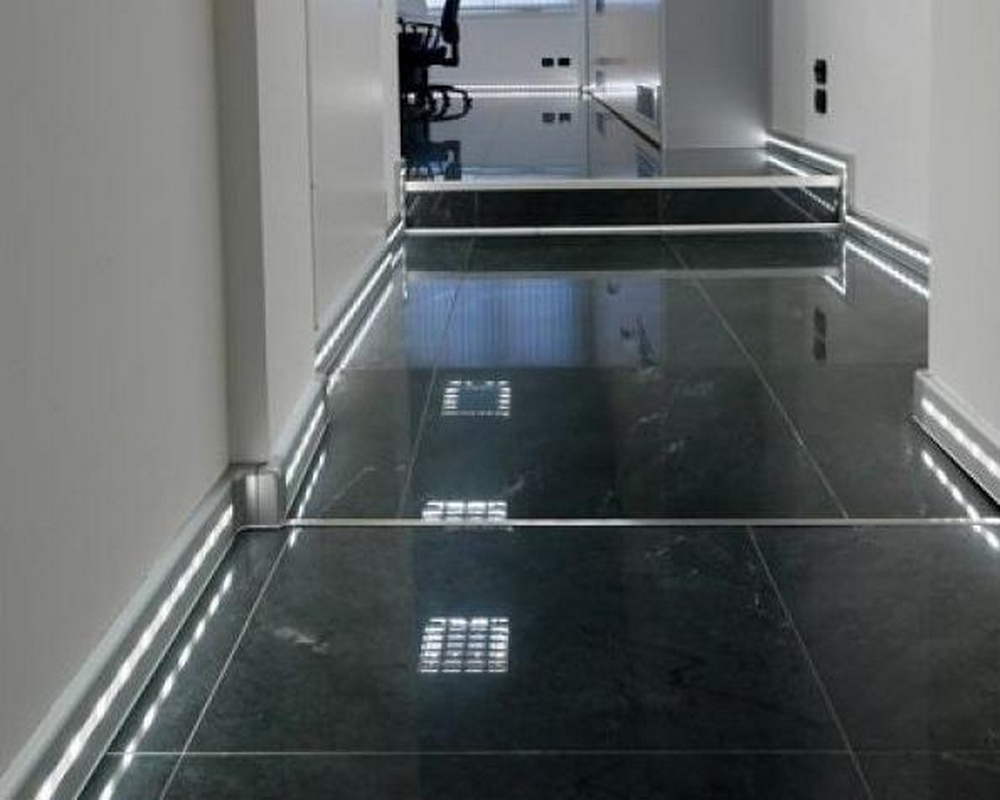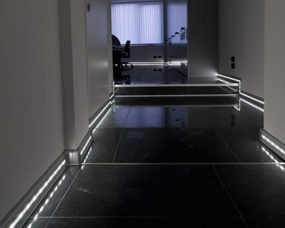 Плинтус имеет специальную матовую ПВХ вставку для светодиодной ленты. У плинтуса нет низа или верха, его можно установить той стороной, которая больше нравится: либо светодиодная лента будет ближе к полу, либо дальше от пола. Полость, где располагается лента, можно закрыть светорассеивающей вставкой, чтобы свет был мягким. Или можно оставить пространство открытым, чтобы свет был более жестким. Сама вставка идет в комплекте.