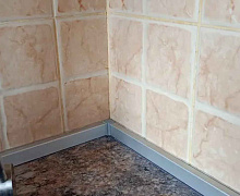 Способ монтажа: плинтус для столешницы из вспененного ПВХ состоит из двух частей - основания и декоративной части. Основание крепится к поверхности на жидкие гвозди или саморезы к стене или столешнице. Далее сверху надевается декоративная часть. Торцы оформляются при помощи специальной фурнитуры, подходящей под цвет плинтуса.