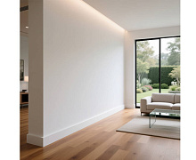 Белый плинтус из UHD Polymer. Длина 2000 мм. Высота 80 мм. Ширина 16,5 мм.