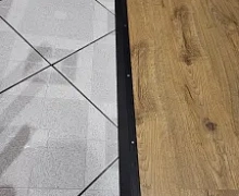 Способ монтажа: алюминиевый порожек крепится в проем между двумя напольными покрытиями на саморезы.