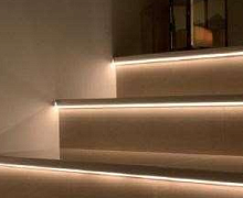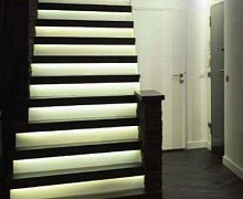 Алюминиевая накладка на ступеньку под LED или RGBленту. Позволяет разместить подсветку на лестнице и создать оригинальный дизайн. У алюминия великолепные эксплуатационные показатели. Металл легкий, прочный, устойчивый к коррозии, износостойкий. Это позволяет устанавливать его в полукоммерческих помещениях.
