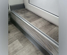 Способ монтажа: алюминиевый порожек без вставки крепится в проем между двумя напольными покрытиями или на ступени при помощи саморезов. Затем прорезиненную ПВХ вставку нужно нагреть строительным или обычным феном, либо подержать в горячей воде, чтобы материал стал мягче и легче вошел в паз профиля.
