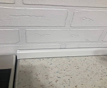 Способ монтажа: данный плинтус для столешницы состоит из двух частей - основания и декоративной части. Основание крепится к поверхности на жидкие гвозди или саморезы к стене или столешнице. Далее сверху надевается рифленая часть. Торцы оформляются при помощи специальной фурнитуры, подходящей под цвет плинтуса.