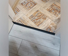 Способ монтажа: алюминиевый порожек крепится в проем между двумя напольными покрытиями с помощью универсального би-дюбеля. В полу просверливаются отверстия, а затем би-дюбели заводятся своей шляпкой в нишу с обратной стороны порога и вставляются в просверленные отверстия.